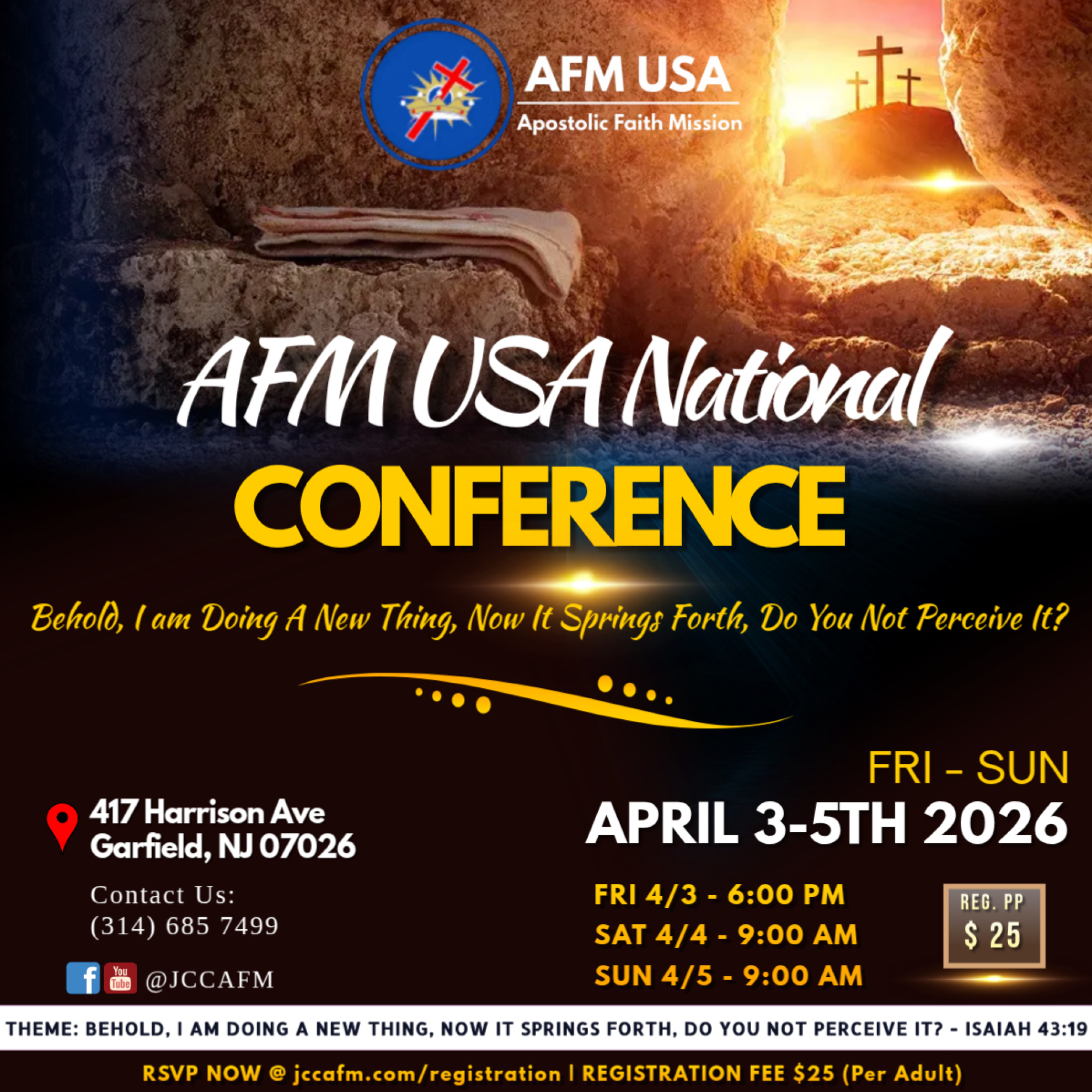 AFM USA is pleased to announce that preparations for the 2026 AFM USA National Conference are underway. This historic gathering will be a time of celebration and reflection on the crucifixion, death, and resurrection of our Lord and Savior, Jesus Christ.